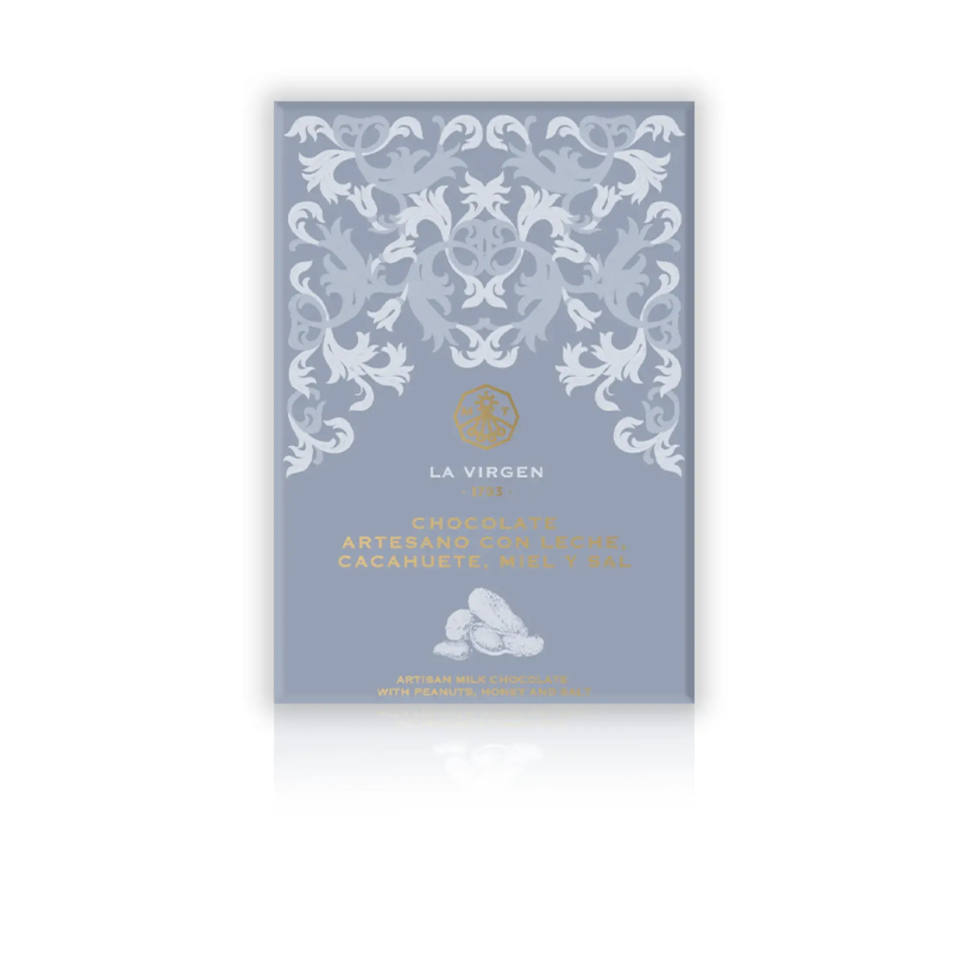 Cada trozo de nuestra tableta ofrece una experiencia sensorial incomparable. El chocolate negro se fusiona perfectamente con el sabor crujiente de los CACAHUETES, la dulzura de la miel y el toque final de sal, creando una combinación armónica de texturas y sabores. La suavidad del chocolate negro 55% se mezcla maravillosamente con la cremosidad de la miel y el crujido de los CACAHUETES, mientras que la sal potencia todos los sabores, ofreciendo una experiencia inolvidable en cada bocado. Cada trozo de esta tableta de 100g está diseñado para deleitar tu paladar con la intensidad de los sabores y la calidad artesanal de los ingredientes.